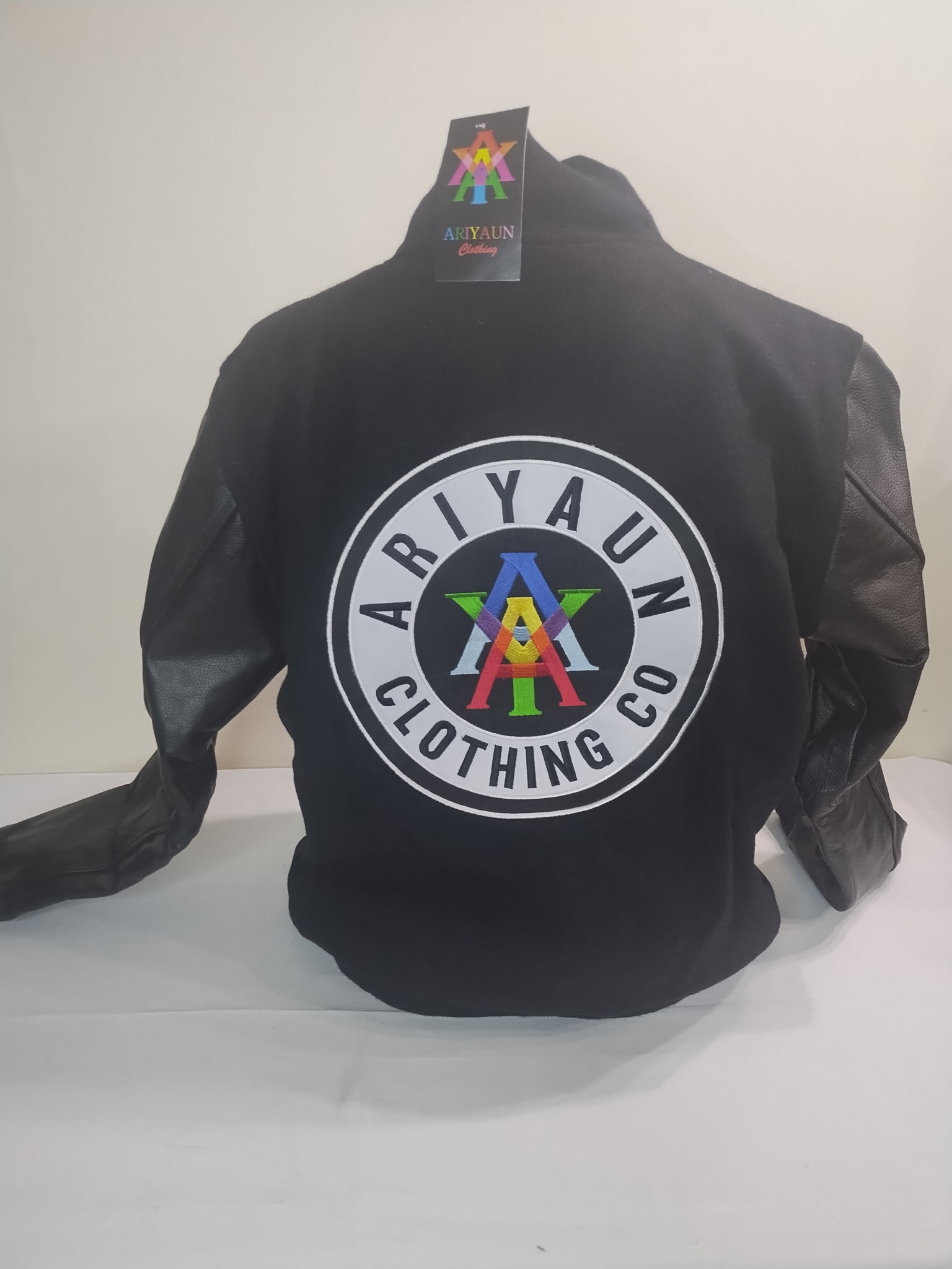 Introducing our newest Heritage Varsity Jacket - a timeless piece that blends streetwear style with classic craftsmanship. The jacket features a bold embroidered AyClothing Co. logo across the back and a vibrant “AA” emblem on the front, symbolizing unity and originality. The soft wool body contrasts perfectly with sleek faux-leather sleeves, giving it a luxurious yet edgy look. Finished with ribbed cuffs and a snap-button front, this jacket is ideal for cool weather and standout outfits. Designed for those who move with confidence and pride in their culture and community.